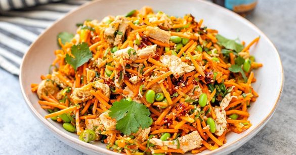 Crunchy, fresh, and full of flavor, this Asian carrot salad with chicken and edamame is a high-protein, high-fiber meal that’s perfect for a light but filling lunch.