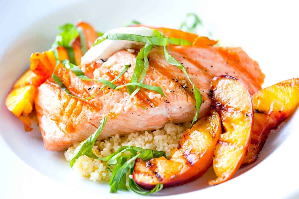 Grilled Salmon Recipe with Nectarines and Goat Cheese